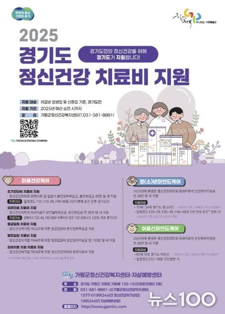 가평군정신건강복지센터는 “센터는 정신건강 치료비 지원과 더불어 등록 대상자에게 지속적인 상담과 치료 연계를 제공하고, 심리지원 프로그램과 정신건강 예방 사업도 병행하고 있다”며 “모든 세대가 마음 건강을 지킬 수 있도록 적극적인 지원을 이어가겠다”고 밝혔다.