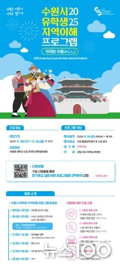 뉴스100 김동초 기자 | 수원시국제교류센터가 ‘우리는 수원 in(人)-2025 수원시 유학생 지역 이해 프로그램’에 참가할 외국인 유학생 64명을 5월 16일까지 모집한다.