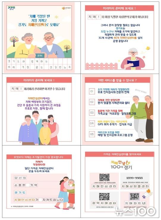 뉴스100 기자 | 국내 치매환자가 내년 100만 명을 넘어설 것으로 예상되는 가운데 경기도가 치매 예방부터 진단, 가족돌봄까지 46개 치매안심센터를 통해 원스톱 지원을 하고 있다며 적극 이용을 당부했다.