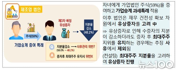 뉴스100 김동초 기자 | 국세청은 중소기업인들의 세무부담을 해소하고 원활한 가업승계를 지원하기 위해 ’22년부터 「가업승계 세무컨설팅」을 운영하고 있다.