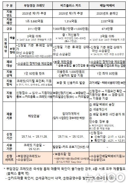 새롭게 시작하는 두 사업은 2025년 제1차 추가경정예산을 통해 ▲부담경감 크레딧 1조 5,660억원, ▲비즈플러스카드 7,000억원 규모로 지원될 예정이며, 7월 14일부터 신청·접수를 시작할 계획이다.