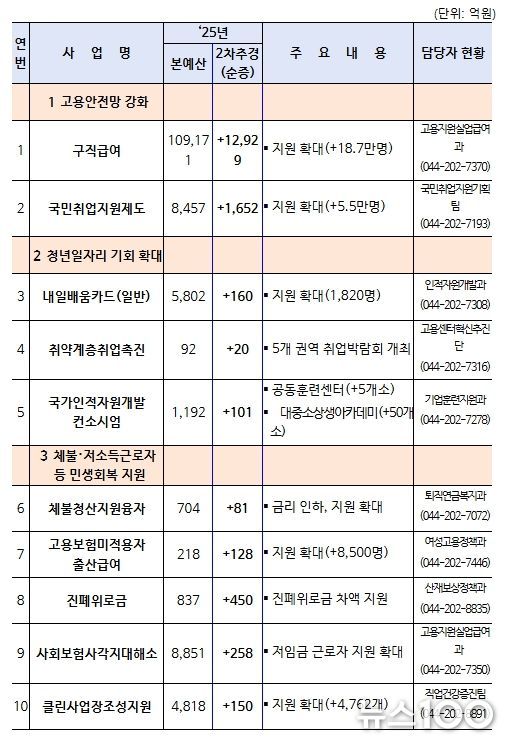 고용노동부는 신속한 계획 수립 및 절차 간소화, 사업별 집중 홍보 등을 통해 새 정부 추가경정예산이 현장에 빠르게 집행될 수 있도록 최선을 다할 계획이라고 전했다.