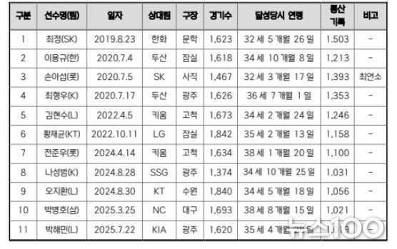 강민호는 1,000득점을 달성할 경우, 만 40세의 나이로 종전 이종범(전 KIA)의 기록인 38세 9개월 21일을 넘어 역대 최고령 기록을 새로 쓰게 된다