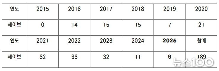 뉴스100 김동초 기자 | 삼성 김재윤이 역대 6번째 6시즌 연속 10세이브와 역대 31번째 개인 통산 600경기 출장이라는 두 개의 대기록 달성을 눈앞에 두고 있다.