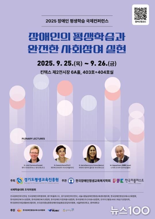 뉴스100 기자 | 경기도와 경기도평생교육진흥원이 26일 고양 킨텍스 제2전시장 6A홀에서 ‘2025 장애인 평생교육 국제 학술대회’를 개최한다. 장애인 평생학습권 보장을 위해 국내를 넘어 국제적 차원의 논의장을 마련한 것은 이번이 전국 최초이다.