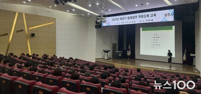 뉴스100 김동초 기자 | 광주시는 지난 24일 시청 수어장대홀에서 160여 명의 공직자를 대상으로 ‘2025년 하반기 법제업무 역량 강화 교육’을 실시했다.