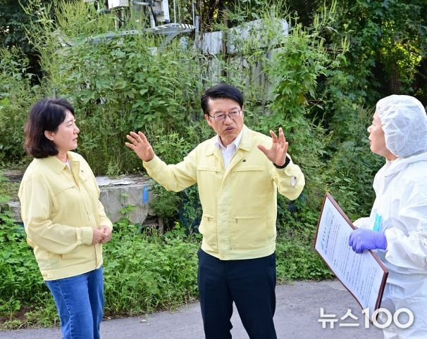 뉴스100 기자 | 최근 경기 북부(양주, 파주, 연천)에서 아프리카돼지열병(ASF) 발생 사례가 잇따르는 가운데 김대순 경기도 행정2부지사가 26일 파주시 파주읍 부곡리 소재 양돈농장을 방문해 아프리카돼지열병(ASF) 차단방역 실태를 직접 점검했다.