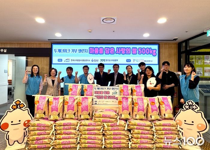 뉴스100 김동초 기자 | 한국수자원공사 팔당권지사는 지난 24일 민족의 대명절 추석을 맞아 사회공헌사업의 일환으로 ‘투게더워크’ 기부 챌린지를 통해 모인 성금으로 하남시미사강변종합사회복지관에 200만원 상당의 ‘사랑의 쌀’ 500kg을 전달했다.