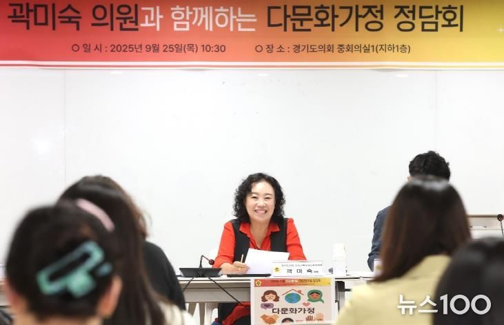 뉴스100 김동초 기자 | 경기도의회 곽미숙 의원(국민의힘, 고양6)은 지난 25일 오전 경기도의회 중회의실에서 열린 다문화가정 정담회에서 “현장에서 제기된 어려움을 분명히 인지했고, 그 취지에 깊이 공감한다”며 “당장의 확답보다는 사실관계를 세밀히 점검하고, 집행부와 제도적 개선 가능성을 차분히 논의하겠다”고 밝혔다.