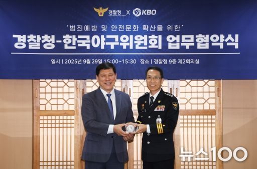 뉴스100 김동초 기자 | KBO와 경찰청(청장 직무대행 유재성)은 9월 29일(월) 경찰청에서 업무 협약을 체결했다.