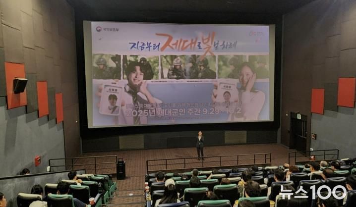 뉴스100 김동초 기자 | 경기북부보훈지청 제대군인지원센터는 2025년 제대군인 주간을 맞아 9월 26일 CGV 신세계백화점의정부점에서 제대군인과 가족 100여 명을 초청해 영화 '어쩔수가없다' 단체 관람 행사를 개최했다.