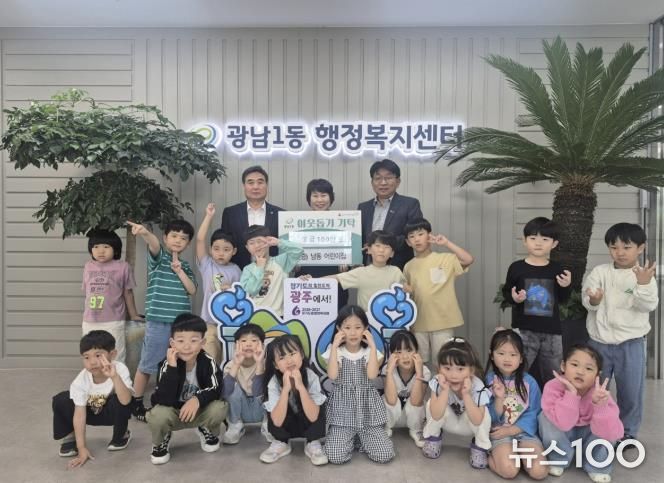 뉴스100 김동초 기자 | 남동어린이집 원아들과 교직원 20여 명은 지난달 29일 광주시 광남1동 행정복지센터를 방문해 어려운 이웃을 돕기 위한 성금 100만 원을 기탁했다.