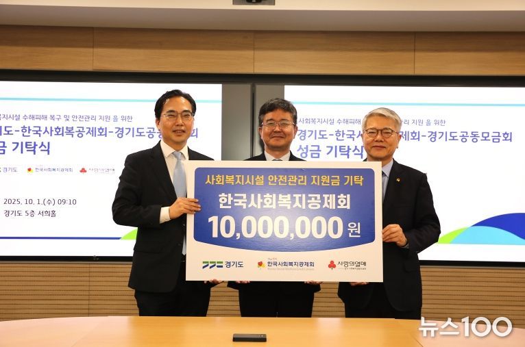 뉴스100 김동초 기자 | 경기도는 1일 경기도청에서 한국사회복지공제회, 경기도공동모금회와 함께 ‘경기도 사회복지시설 안전관리 지원 성금 기탁식’을 개최했다.