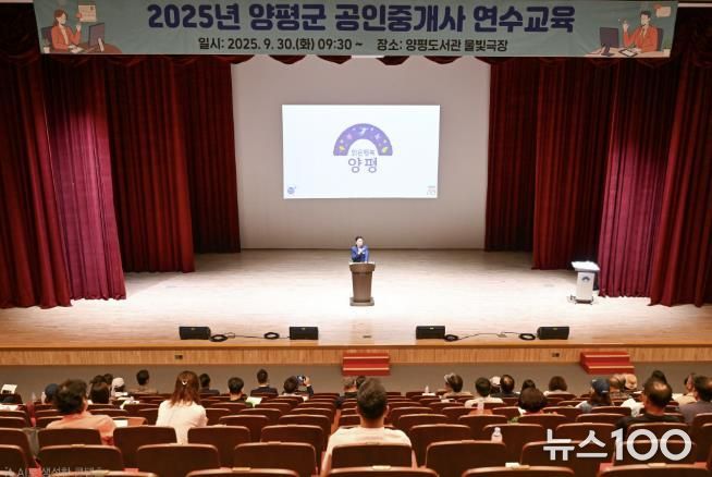 뉴스100 김동초 기자 | 양평군은 지난 9월 30일 양평도서관 물빛극장에서 ‘2025년 공인중개사 연수교육’을 실시했다.