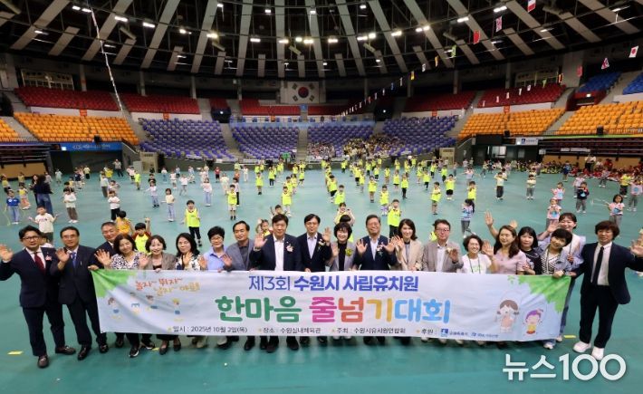 뉴스100 김동초 기자 | 수원특례시는 2일 수원종합운동장 수원체육관에서 ‘제3회 수원시 사립유치원 한마음 줄넘기대회’를 열었다.