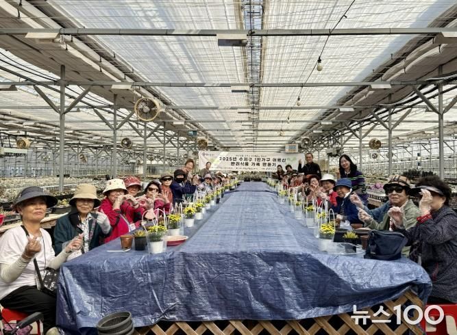 뉴스100 김동초 기자 | 용인특례시 수지구는 10월 경로의 달을 맞아 15일 65세 이상 홀로 어르신 40여 명을 대상으로 이동읍 화훼단지에서 반려식물 식재 체험과 가을 나들이 행사를 진행했다고 16일 밝혔다.