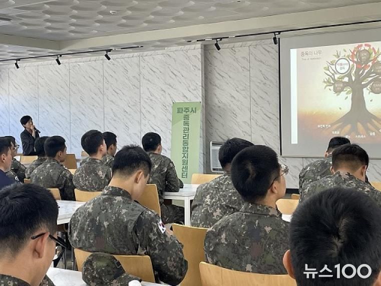 뉴스100 김동초 기자 | 파주시중독관리통합지원센터가 건강한 군 생활과 지역사회의 안전을 위해, 관내 군부대를 대상으로 4대중독(알코올, 인터넷, 마약, 도박) 예방 교육을 운영하고 있는 가운데 10월 13일부터 15일까지 2기갑여단 600여 명을 대상으로 도박 중독 예방교육을 실시했다고 밝혔다.