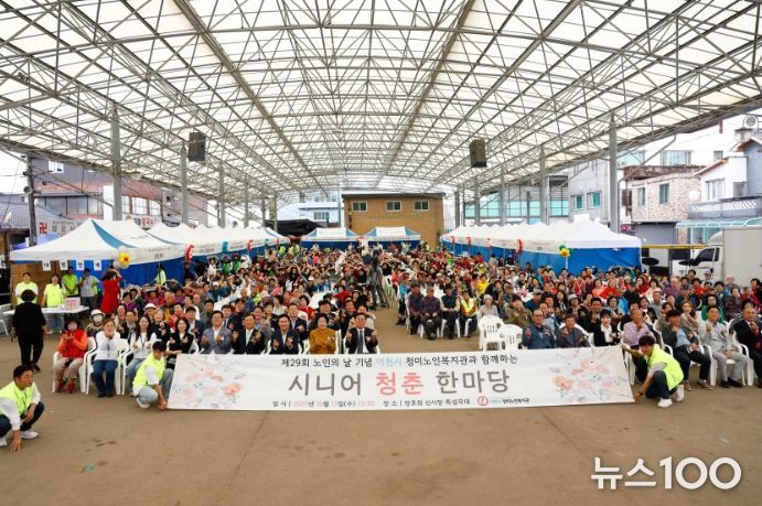 뉴스100 김동초 기자 | 이천시는 제29회 노인의 날을 기념하여 10월 15일(화) 이천시 청미노인복지관(관장 최대열)에서 지역 주민과 어르신 800여 명이 참여한 가운데 ‘시니어 청춘 한마당’ 행사를 성황리에 개최했다고 밝혔다.