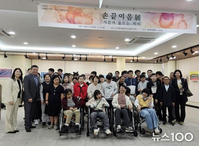 뉴스100 김동초 기자 | 광주시 장애인 주간·단기보호시설은 16일 곤지암 어울림마당에서 장애인 미술 및 사진 작품전시회 ‘제4회 손끝 이음 展 – 시간이 물드는 자리’ 개회식을 개최했다.