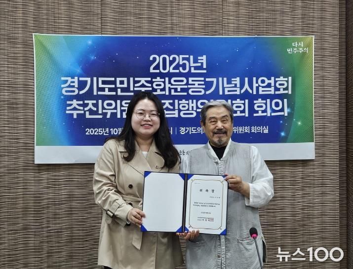 뉴스100 김동초 기자 | 경기도의회 교육행정위원회 이자형 의원(더불어민주당, 비례)은 10월 16일 오후 2시 경기도의회 교육행정위원회 회의실에서 진행된 '2025년 경기도민주화운동 기념사업 추진현황 보고회'에서 자문위원으로 위촉됐다.