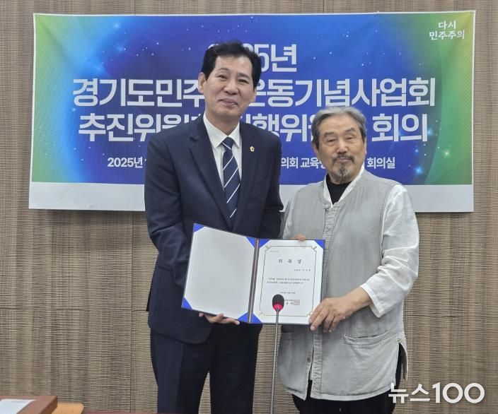 뉴스100 김동초 기자 | 경기도의회 안전행정위원회 이영봉 의원(더불어민주당, 의정부2)이 10월 16일 경기도의회 교육행정위원회 회의실에서 열린 '2025년 경기도 민주화운동 기념사업 추진현황 보고회'에서 경기도 민주화운동 기념사업 자문위원으로 위촉됐다. 이 의원은 이 자리에서 “민주주의의 본질을 도민과 함께 되새기고, 그 가치를 실질적으로 확산시킬 수 있는 정책적 뒷받침이 필요하다”고 강조했다.