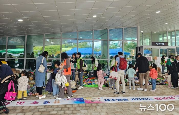 뉴스100 김동초 기자 | 수원시 공공형어린이집 아나바다 행사 ‘얘들아, 푸른콩 마트에 놀러와’가 18일 수원문화원 빛누리아트홀에서 열렸다.