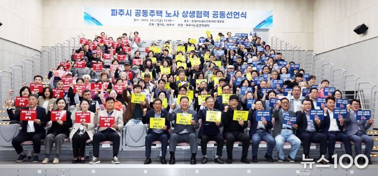 뉴스100 김동초 기자 | 아파트 경비원, 미화원 등 공동주택 노동자들의 초단기 계약 관행을 근절하기 위해 경기도와 파주시, 지난 17일 파주시 운정 다누림 노인복지관에서 ‘공동주택 노동자 상생 협력 선언식’을 개최했다.