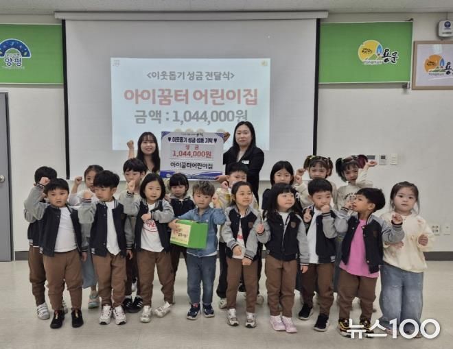 뉴스100 김동초 기자 | 양평군 용문면은 지난 20일 용문면 소재 아이꿈터 어린이집이 주최한 ‘소소한 기쁨, 특별한 만남, 행복 나눔 작은 장터’ 바자회를 통해 마련된 수익금 1,044,000원을 용문면에 기탁했다고 밝혔다.