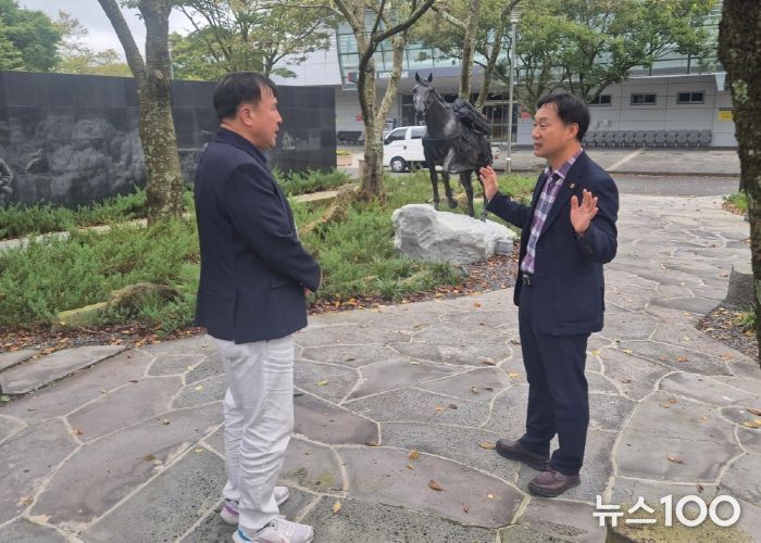 뉴스100 김동초 기자 | 경기도의회 농정해양위원회 부위원장 윤종영 의원(국민의힘, 연천)은 10월 22일 한국마사회 제주본부를 방문해 군마 ‘레클리스’ 기념행사의 의미를 공유하고, 경기도와 제주특별자치도, 한국마사회 간 협력 방안을 논의했다.