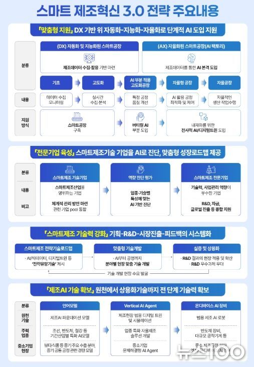 뉴스100 김동초 기자 | 중소벤처기업부는 24일, 제5차 국정현안관계장관회의에서 'AI 기반 스마트제조혁신 3.0 전략'을 발표했다.