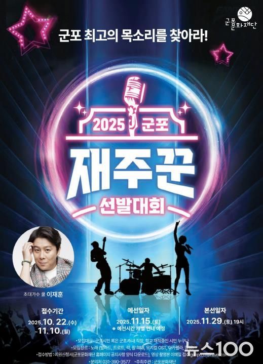 뉴스100 김동초 기자 | 지난해 큰 호응을 얻었던 '군포 재주꾼 선발대회'가 올해도 돌아온다. 군포문화재단은 군포시민들이 자신의 끼와 재능을 공연과 결합해 무대 위에서 마음껏 발휘할 수 있도록 기획한 시민참여형 문화 프로그램 '2025 군포 재주꾼 선발대회'를 오는 11월 29일 군포문화예술회관 수리홀에서 개최한다.