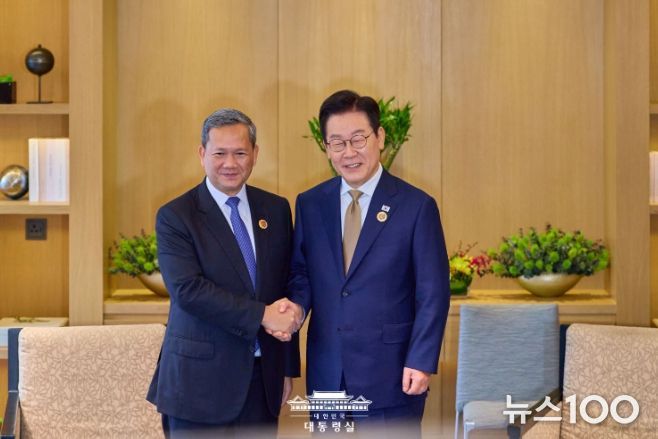 뉴스100 김동초 기자 | 이재명 대통령은 27일 오전 제47차 아세안 정상회의 참석을 계기로 ‘훈 마넷’ 캄보디아 총리와 취임 후 첫 양자회담을 가졌다.