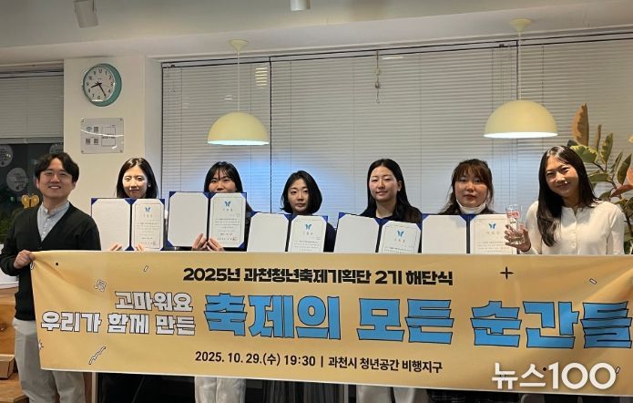뉴스100 김동초 기자 | 과천시는 지난 29일 비행지구에서 ‘제2기 과천청년축제기획단’(이하, 기획단) 해단식을 열었다. 기획단은 이번 해단식을 끝으로 4개월간의 활동을 공식적으로 마무리했다.