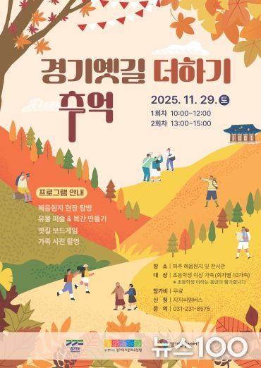 뉴스100 기자 | 경기문화재단 경기역사문화유산원는 오는 11월 29일 토요일, 의주길에 위치한 파주 혜음원지 일대에서 초등학생 이상 자녀를 둔 가족을 대상으로 하는 역사 체험 프로그램 ‘경기옛길 더하기 추억’을 개최한다고 밝혔다.