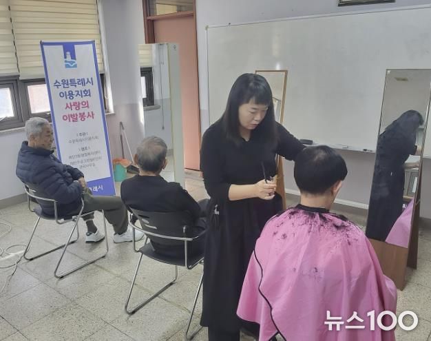 뉴스100 김동초 기자 | 수원시 영통구 매탄3동 주공6단지에서는 지난 18일, 시저스맨이 저소득 어르신과 장애인을 대상으로‘사랑의 이발 봉사를 진행하며 지역사회에 따뜻한 나눔을 전했다.