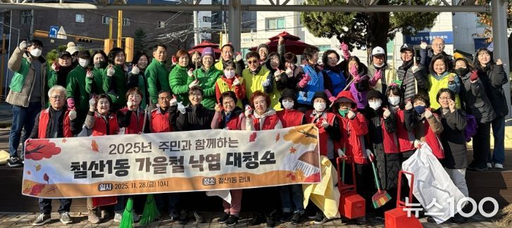 뉴스100 김동초 기자 | 광명시 철산1동 행정복지센터는 지난 21일과 28일 ‘2025년 가을철 낙엽 대청소’를 실시하며 안전하고 쾌적한 마을 환경 조성에 힘썼다.
