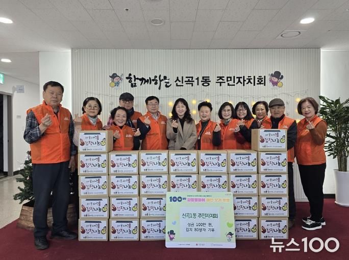 뉴스100 김동초 기자 | 의정부시 신곡1동주민센터는 12월 1일 신곡1동 주민자치회가 성금 100만 원과 김장김치 80상자를 기탁했다고 밝혔다.