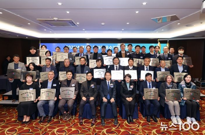 뉴스100 김동초 기자 | 경기도와 경기도일자리재단은 12월 2일 이비스앰버서더 수원에서 ‘2025년 경기도 일자리 우수기업 인증 수여식’을 열고, 일자리 우수기업 50개사와 청년 일하기 좋은 기업 10개사 등 총 60개 기업에 인증서와 현판을 수여했다.