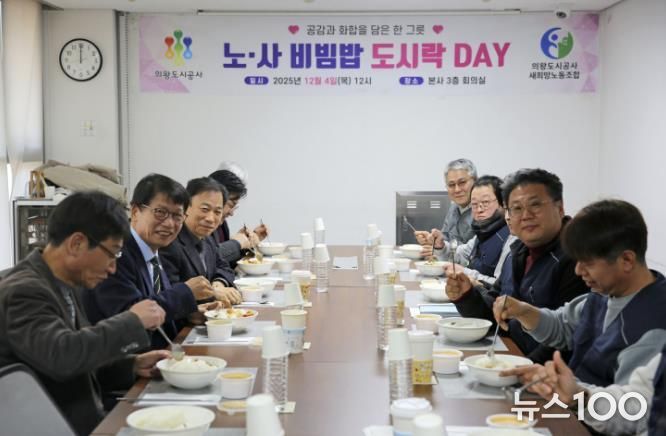 뉴스100 김동초 기자 | 의왕도시공사는 12월 4일 노사 간 협력과 소통을 강화하고 건강한 조직문화 확산을 위한 ‘노·사 비빔밥 도시락데이’ 행사를 개최했다고 밝혔다.