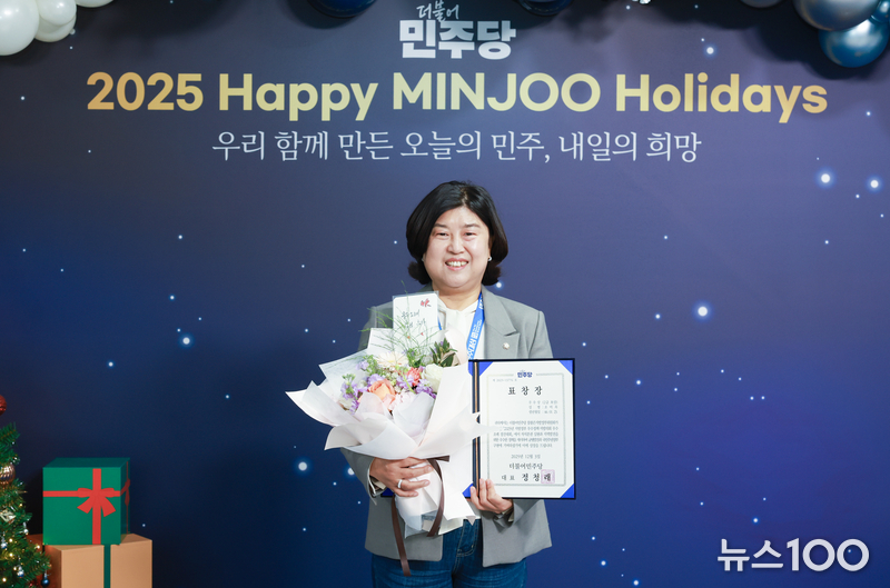 수원특례시의회 조미옥 의원이 14일 국회 의원회관에서 열린 '2025 지방정부 우수정책·지방의회 우수조례 경진대회'에서 지방의회 우수조례 부문 우수상을 받은 뒤 기념촬영을 하고 있다
