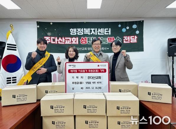 뉴스100 김동초 기자 | 오산시 세마동 행정복지센터는 지난 16일 주다산교회가 겨울철 어려움을 겪고 있는 이웃들을 돕기 위해 생필품 세트 40개를 기탁했다고 밝혔다.