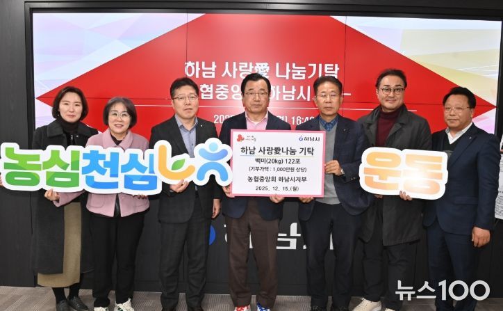 뉴스100 김동초 기자 | 지난 15일, 농협중앙회 하남시지부는 ‘농심천심’ 운동의 일환으로 지역 내 취약계층을 위한 1천만원 상당의 백미(20㎏) 122포를 하남시에 기탁했다.