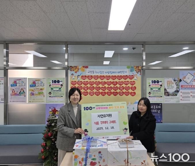 뉴스100 김동초 기자 | 의정부시 고산동주민센터는 12월 18일 산곡동 소재 자연유치원이 독거노인을 위해 반찬 꾸러미 2세트를 전달했다고 밝혔다.