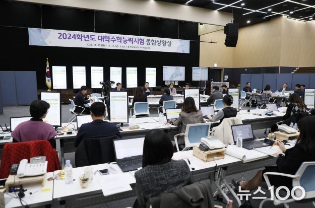 뉴스100 김동초 기자 | 임태희 경기도교육감은 2024학년도 대학수학능력시험이 치러지는 16일 시험장을 찾아 수험생을 응원했다. 이어 종합상황실을 방문해 수능 진행 현황을 살피고 만전을 기해줄 것을 당부했다.