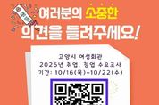 뉴스100 김동초 기자 | 고양특례시 여성회관은 시민의 직무 역량 강화와 성공적인 취·창업 연계를 지원하기 위해 ‘2026년 취·창업 특강 수요조사’를 실시한다. 이번 조사는 고양시민을 대상으로 22일 오후 5시까지 진행되며, 온라인 설문을 통해 참여할 수 있다. 설문은 QR코드를 통해 접속 가능하며, 취업과 창업 분야에 대한 실질적인 수요를 파악하는 데 중점을 둔다. 조사 항목에는 성별, 연령대, 거주 지역 등 기본 정보뿐 아니라, 기존 특강 참여 경험, 향후 참여 목표, 희망 강좌 주제 등이 포함된다. 특히 창업 희망자를 위한 특강 참여 의향과 구체적인 주제 제안도 함께 수렴할 예정이다. 고양시 여성회관은 이번 수요조사 결과를 바탕으로 2026년 특강 교육과정을 기획하고, 실습 및 자격 연계 중심의 프로그램을 통해 시민의 직무 역량을 강화할 계획이다. 또한 채용 정보 제공, 진로 상담, 이력서·면접 컨설팅 등 실질적인 취업 지원과 더불어, 지속적인 교류를 위한 커뮤니티 활동도 함께 운영할 예정이다. 여성회관 관계자는 “시민의 목소리를 반영한 맞춤형 교육 프로그램을 통해 교육 만족도를