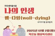 뉴스100 김동초 기자 | 광명시 학온동 주민자치회는 오는 12월 2일부터 매주 화요일과 목요일 오후 2시부터 4시까지 총 4회에 걸쳐 ‘웰다잉 교육’을 진행한다. 교육은 학온동 행정복지센터 1층 소회의실에서 열리며, 주민의 삶의 질 향상과 노년기 준비를 돕기 위해 마련했다. 이번 교육은 고령화가 빠르게 진행되는 지역 특성과 주민 수요를 반영해 기획했다. 삶의 마무리를 준비하는 ‘웰다잉(Well-dying)’에 대한 이해를 높이고, 자신의 인생을 돌아보는 시간을 제공하는 데 중점을 둔다. 교육은 ▲웰다잉의 전반적인 이해 ▲유언장 및 인생노트 작성 ▲꿈꾸는 장례식과 장기 기증에 대한 이해 ▲버킷리스트 작성과 수료식으로 구성한다. 각 회차별로 워크북을 활용해 참여자가 스스로 삶을 성찰하고 노년을 준비할 수 있도록 돕는 것이 특징이다. 특히 ‘인생노트 작성’과 ‘꿈꾸는 장례식’ 프로그램은 그동안 막연하게만 생각해왔던 노년 준비를 구체적으로 계획하는 계기가 될 것으로 기대된다. 강후근 회장은 “이번 웰다잉 교육이 인생의 마침을 두려움이 아닌 준비의 과정으로 받아들이고, 삶의 의미를