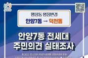 뉴스100 김동초 기자 | 행정동 명칭 변경 사업을 추진 중인 안양시가 만안구 안양7동의 행정동 명칭 변경을 위해 올해 12월 1일부터 내년 1월 31일까지 해당 동 전 세대를 대상으로 주민의견 실태조사를 실시한다고 1일 밝혔다. 이번 주민의견 실태조사는 안양7동의 행정동 명칭을 ‘덕천동’으로 변경하는 것에 대한 찬반 의견 조사다. 안양7동에 거주하는 전체 세대 중 60% 이상이 참여하고, 참여 세대의 과반수가 찬성할 경우 시는 명칭 변경을 추진할 예정이다. 조사방법은 올해 12월 1일부터 2026년 1월 31일까지 시 홈페이지를 통해 비대면 조사를 진행하고, 12월 18일부터 2026년 1월 31일까지 안양7동 행정동명칭변경추진위원회가 각 세대 방문조사를 병행하게 된다. 덕천(德泉)동은 어린이들이 샘물 솟듯이 씩씩하게 자라서 나라에 큰 일꾼이 되기를 바라는 뜻으로, 큰 덕(德)에 샘 천(泉)을 취해 붙여진 옛 지명이다. 시는 이에 앞서 지난 9월 12일부터 9월 30일까지 안양7동 주민들을 대상으로 행정동 명칭에 대한 선호도 조사를 진행했고, 조사에 참여한 646세대의 주민 중 52.