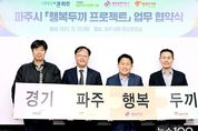 뉴스100 김동초 기자 | 파주시는 ㈔딜로이트한마음나눔, 행복나래㈜, 행복도시락 사회적협동조합과 함께 결식 우려가 있는 외국인 노동자 자녀 지원을 위한 ‘행복두끼 프로젝트’업무협약을 체결했다고 밝혔다. 이날 협약식에는 최병갑 파주시 부시장을 비롯해 ㈔딜로이트한마음나눔 유병문 상임이사, 행복나래㈜ 조민영 본부장, 행복도시락 사회적협동조합 최준 사무국장 등 관계자들이 참석해, 아동복지 향상을 위한 상호 협력체계를 구축하기로 뜻을 모았다. 이번 협약을 통해 파주시는 결식 우려 아동을 추천하고, ㈔딜로이트한마음나눔, 행복나래㈜와 행복도시락 사회적협동조합은 해당 아동을 대상으로 도시락을 후원·제작·배송하는 역할을 맡게 된다. 이번 협약을 계기로 파주시 내 결식이 우려되는 외국인 노동자 자녀 40명이 지원을 받게 됐으며, ‘아프리카 10개국 이주민 노동자 공동체’는 해당 아동들이 정기적으로 도시락을 제공받게 된 것에 대해 깊은 감사의 마음을 전했다. 최병갑 파주시 부시장은 “파주시가 행복두끼 프로젝트 사업에 참여하게 되어 뜻깊다”라며 “앞으로도 지역사회 내 어려움을 겪는 아동들에게 희망을 전하는 따뜻한 사업이