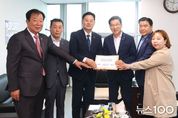 뉴스100 김동초 기자 | 경기도의회 교섭단체인 국민의힘과 더불어민주당이 다시 한번 ‘지방의회법 제정’에 뜻을 모았다. 경기도의회 국민의힘(대표의원 백현종, 구리1)과 더불어민주당(대표의원 최종현, 수원7)은 21일, 경기도 국정감사 차 경기도청을 방문한 국회 행정안전위원회 신정훈 위원장을 만나 ‘지방의회 제도개선을 위한 '지방의회법' 제정 건의안’을 제출했다. 이 자리에는 국민의힘에서 이용호 총괄수석부대표(비례)와 이한국 수석정책위원장(파주4), 임상오 안전행정위원장(동두천2)이 더불어민주당에서 최종현 대표의원과 전자영 수석대변인(용인4)이 참석했다. 현장에서는 지방의회법 제정의 필요성에 대한 설명과 함께 세부 사항으로 ▲지방의회 운영 관련 자체 예산편성 및 조직관리권 부여 근거 필요 ▲지방의회 사무기구 자체 감사 및 조사권 반영 근거 필요 ▲현행 정책지원관(2의원 1지원관) 제도를 별정직 보좌관제로 전환(1의원 1보좌관제) 등에 관한 건의가 이뤄졌다. 이용호 총괄수석부대표는 “지방의회법은 실질적으로 지방자치단체를 견제하고 감시할 수 있는 최소한의 제도적 기반”이라며 “그 최소한의 장치가 있어야만