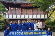 뉴스100 김동초 기자 | 중국 내 독립운동 유적지를 탐방 중인 경기도의회 ‘독도사랑ㆍ국토사랑회’와 ‘역사바로세우기 경기연대’는 탐방나흘째인 12일, 상하이(上海) 홍커우 공원(현 루쉰 공원)을 찾았다. 탐방단은 공원 내 매헌 윤봉길 의사 기념관에서 스물다섯 청년의 숭고한 희생이 깃든 현장을 기리며, 대한민국 독립을 향한 치열했던 길을 되새겼다. “자유는 위대한 청년의 희생 덕분” 최효숙 의원(더불어민주당, 비례)은 “오늘 우리가 누리는 자유는 93년 전, 조국의 독립을 위해 자신의 시간을 영원히 멈춘 한 위대한 청년 덕분”이라며, 윤봉길 의사의 의거를 높이 평가했다. 최효숙 의원은 특히 “윤봉길 의사의 의거는 “중국의 백만 대군도 못 한 일”이라는 찬사를 받으며 장제스(蔣介石) 총통과 중국의 마음을 움직였다”면서, “이는 침체됐던 임시정부에 새로운 활력을 불어넣고 대한독립의 희망을 되살린 결정적 사건이었다”고 강조했다. “평화에서 무장투쟁으로의 전환” 유호준 의원(더불어민주당, 남양주6)은 독립운동이 평화적 저항에서 무장투쟁으로 전환된 역사적 맥락을 강조했다. 유호준 의원은 “우리는 본래 평화를 사랑하는 민족이었으며, 3
